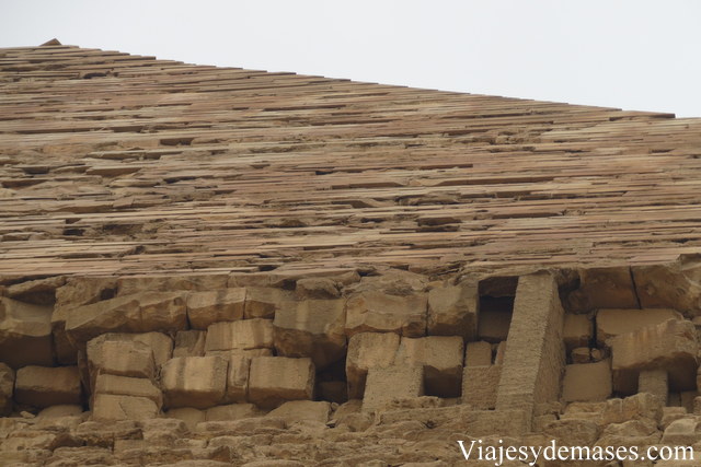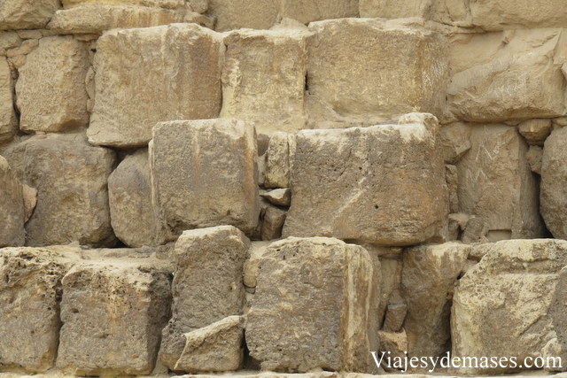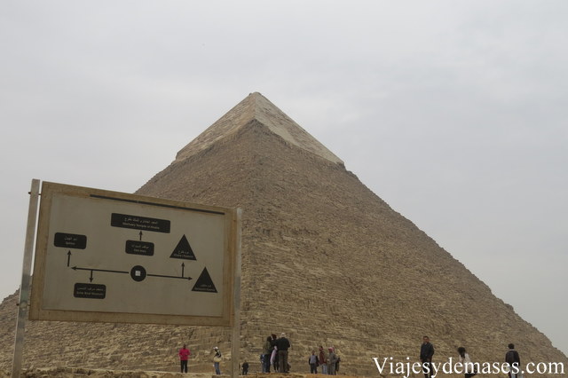 Después de observarla por un buen momento, caminamos hacia la pirámide de Kefrén, reconocible porque su punta conserva parte del revestimiento que cubría las pirámides.