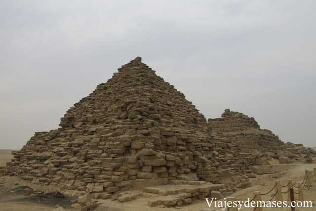 La última pirámide del sitio es la de Micerinos y fue construida para albergar la momia del faraón homónimo, nieto de Keops e hijo de Kefrén, tras su muerte. Tiene una altura de 66,5 metros y es la más “pequeña” de las tres pirámides que se encuentran en el sitio de Giza. A un costado de esta pirámide se encuentran tres pequeñas tumbas de las reinas/princesas esposas del faraón Micerinos.