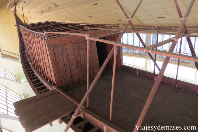 A un costado de la pirámide de Keops se encuentra el museo de la Barca solar. Descubierta en 1954 por Kamal El-Mallah, fue reconstruida e instalada en este museo. Para poder visitarla hay que comprar el ticket a la entrada del museo y cubrir los zapatos con unas protecciones de tela. El museo contiene fotos y herramientas utilizadas durante su reconstrucción, pero lo más interesante de ver, es la barca. Por lo que leí, no es la única barca que se encuentra en el sitio de Giza, pero es la única que ha sido desenterrada.